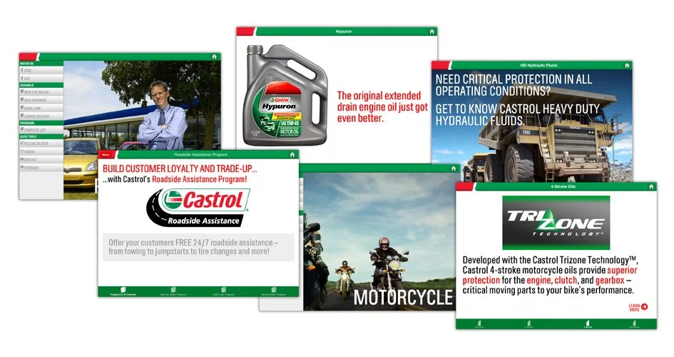 Castrol Digital Sales Enablement Designed a streamlined digital sales enablement tool for Castrol, replacing printed booklets with an interactive, on-demand experience that’s faster, smarter, and always up to date.